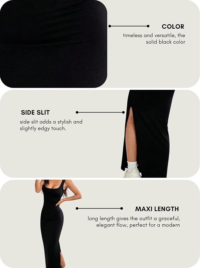 DressesGRECIILOOKS Maxi Dress for Women | Scoop Neck, Side Slit, Sleeveless Fit | Elegance and Cut Details