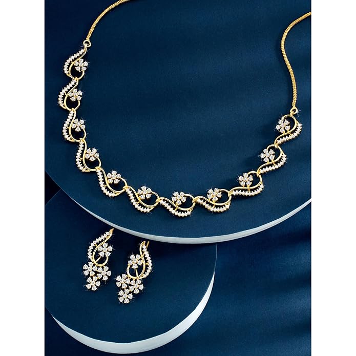 Peora Rose Gold Plated Cubic Zirconia Studded Necklace Drop Earrings Western Jewellery Set for Women Girls