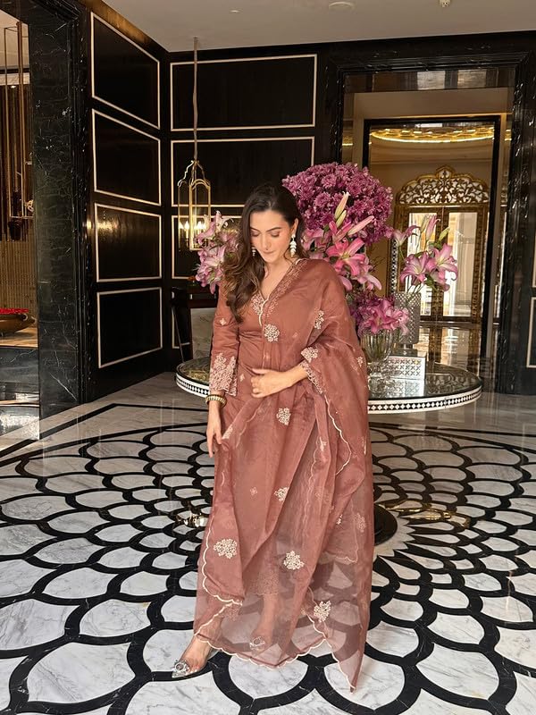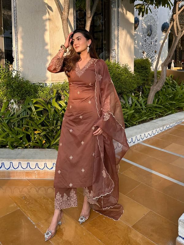 Ethnic Wear, SuitRoyal Export Women’s Viscose Silk Floral Embroidered Straight Kurta Pant with Dupatta